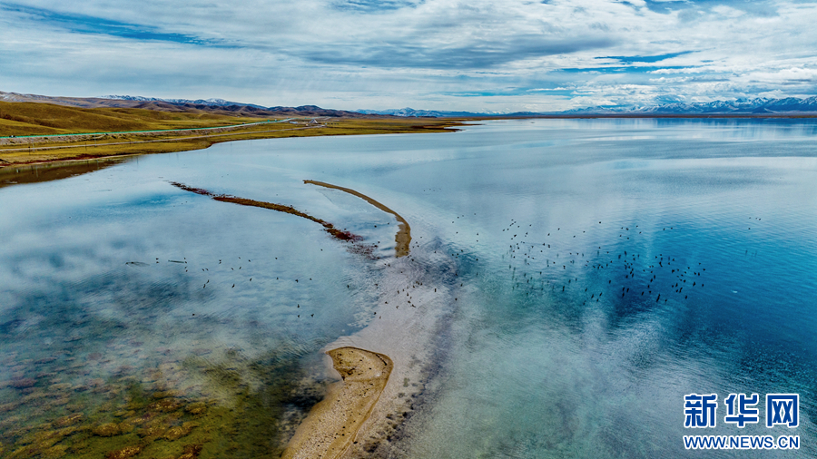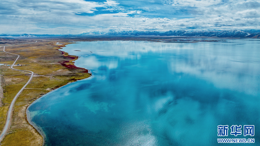 秋日的冬格措纳湖(无人机照片)。新华网发(宋忠勇 摄)