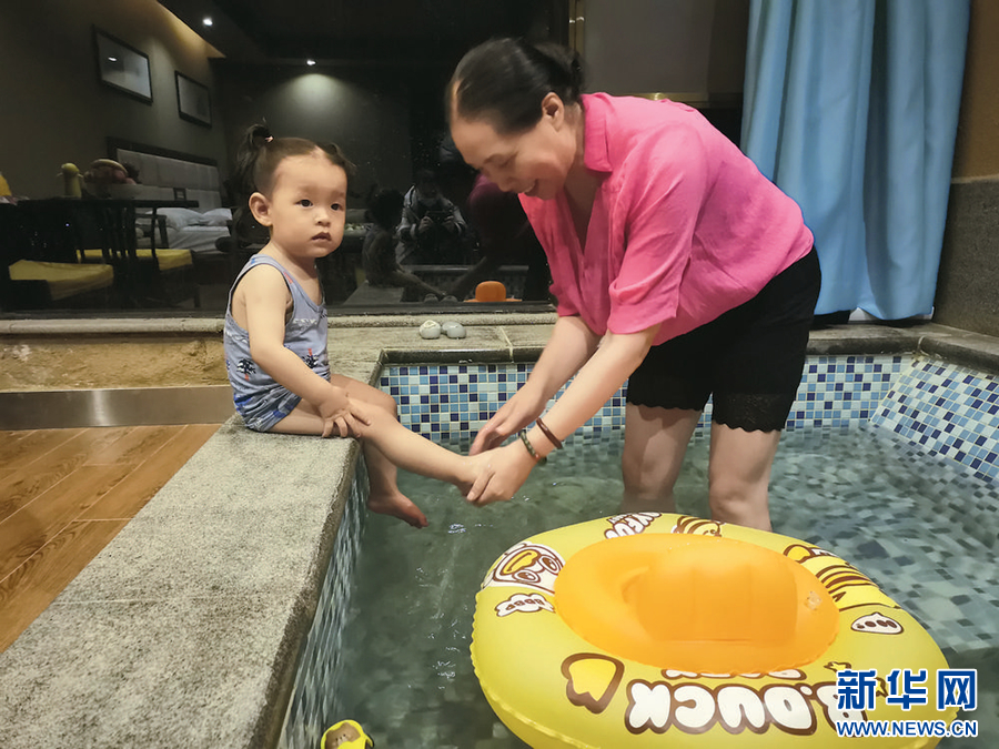 游客在房间泡温泉。新华网发(尹耀增 摄)