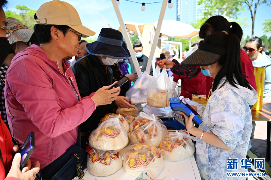 市民在特色美食区选购产品。