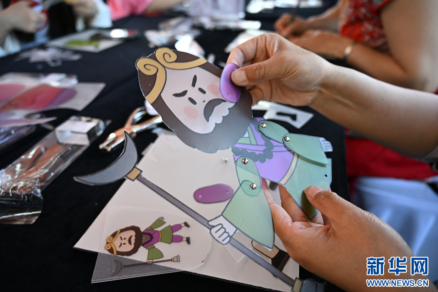 市民在非遗体验馆制作手工产品。