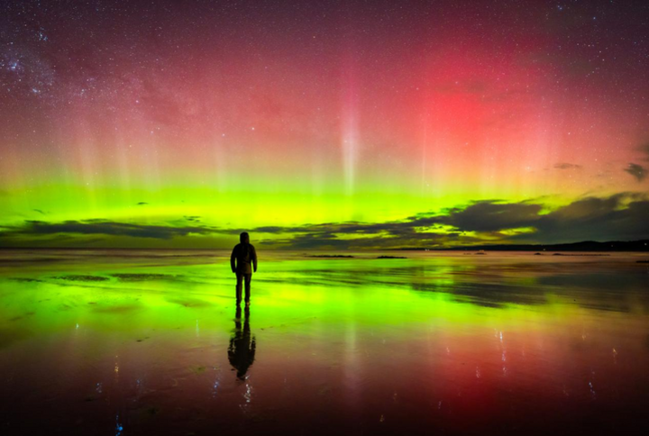 2024年5月,剧烈的太阳风暴来袭,通过空间天气预报并结合自己的经验判断,王凯翔提前锁定北京以北的金山岭—蟠龙山长城一带,认为可能出现极光。地磁暴开始的当晚,他与同伴驱车前往,经历一晚的风雨和沙尘,为了寻找晴空区,在寒风中等待了几个小时。