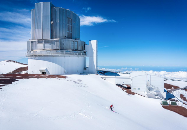王凯翔在夏威夷莫纳克亚天文台滑雪。(受访者供图)