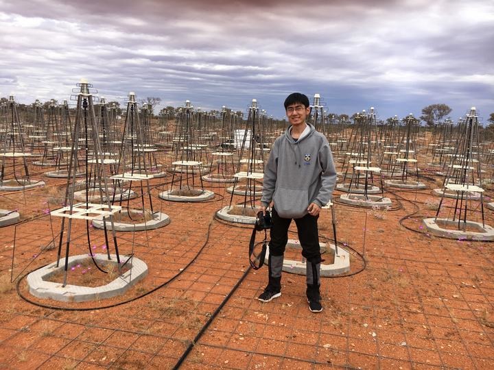 2018年,刘博洋在参观默奇森射电天文台(MRO)的平方公里阵列射电望远镜(SKA)。(受访者供图)