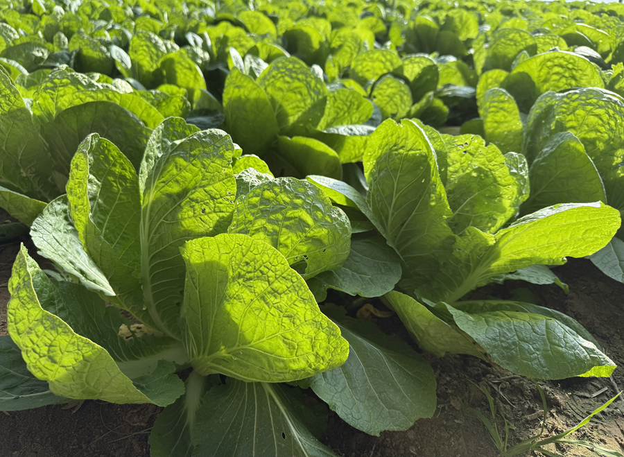 蔬菜大棚里长势喜人的白菜。新华网 鱼昊 摄