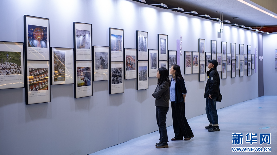 “国社之镜·世纪光影”新闻摄影展暨“镜揽河湟·影耀乐都”主题摄影展举办地海东市图书馆。新华网 潘彬彬 摄