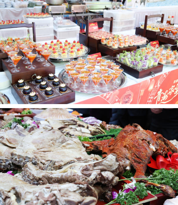 活动当日,嘉宾云集、盛宴飘香。当日上午11时,青海家宴流水席品鉴活动在喜庆祥和的氛围中拉开帷幕,青海省商务厅领导现场发布“青海家宴美食地图1.0版本”与“青海家宴周历”,前者以数字化方式系统标注核心餐饮主体及特色食材,为消费者提供权威寻味“家宴”指南,后者每周更新青海家宴特色菜品、景区景点及美图展示,打造“美食+美景+美图”一体化消费体验;刚察县同步发布“青海家宴之刚察菜式及菜品”,将本地牦牛肉、藏羊肉、黄菇、青稞等绿色有机食材融入家宴标准体系,展现了县域特色与品牌规范的创新融合。品鉴环节,西宁富力万达文化酒店、西宁新华联索菲特大酒店、刚察维也纳酒店、刚察扎藏牧布餐饮服务有限公司、刚察县泉吉乡金山生态畜牧业专业合作社、刚察县雲来饭店等14家西宁及刚察两地餐饮企业联合推出六类融合传统与创新的精品家宴菜式,集中呈现青海饮食文化的独特魅力与高原食材的生态价值。