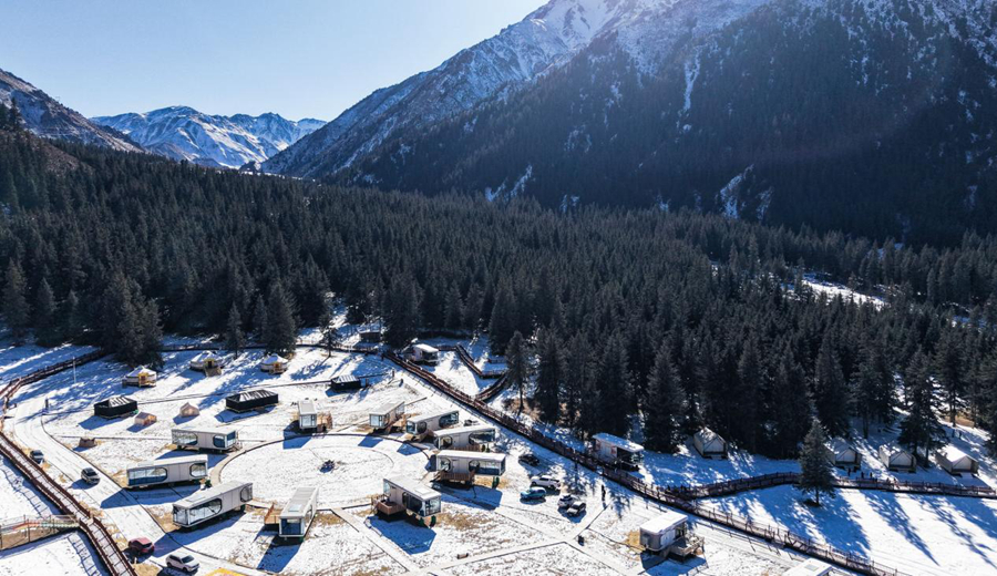 1月10日拍摄的祁连县阿咪东索林海露营基地(无人机照片)。新华社记者 齐芷玥 摄