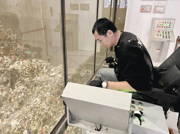 在垃圾吊控制室,透过巨大的观察窗,2万吨容量的垃圾池仍透着强烈的压迫感,宛如无底深渊。操作员白龙坐在操作椅上,熟练操控自重8吨的机械爪,一爪下去,近17吨的垃圾被带到半空中,等待投向焚烧炉口。“我们实行24小时三班倒制度,全年没有节假日,每个班次差不多每半小时就要投运一次。”白龙语气沉稳,目光锁定屏幕与机械爪轨迹。