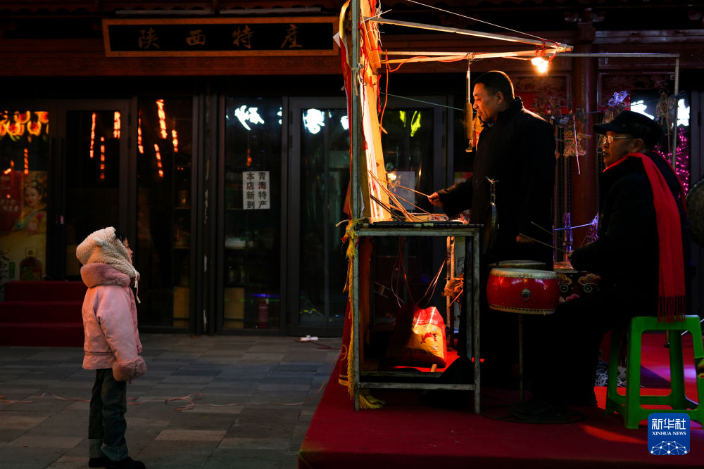 1月25日,一名小朋友在青海省西宁市城北区观看皮影戏。新华社记者 齐芷玥 摄
