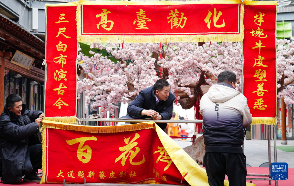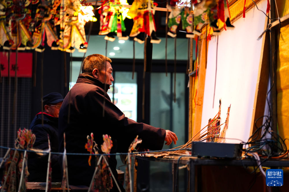 1月25日,周邦辉在青海省西宁市城北区表演皮影戏。新华社记者 齐芷玥 摄