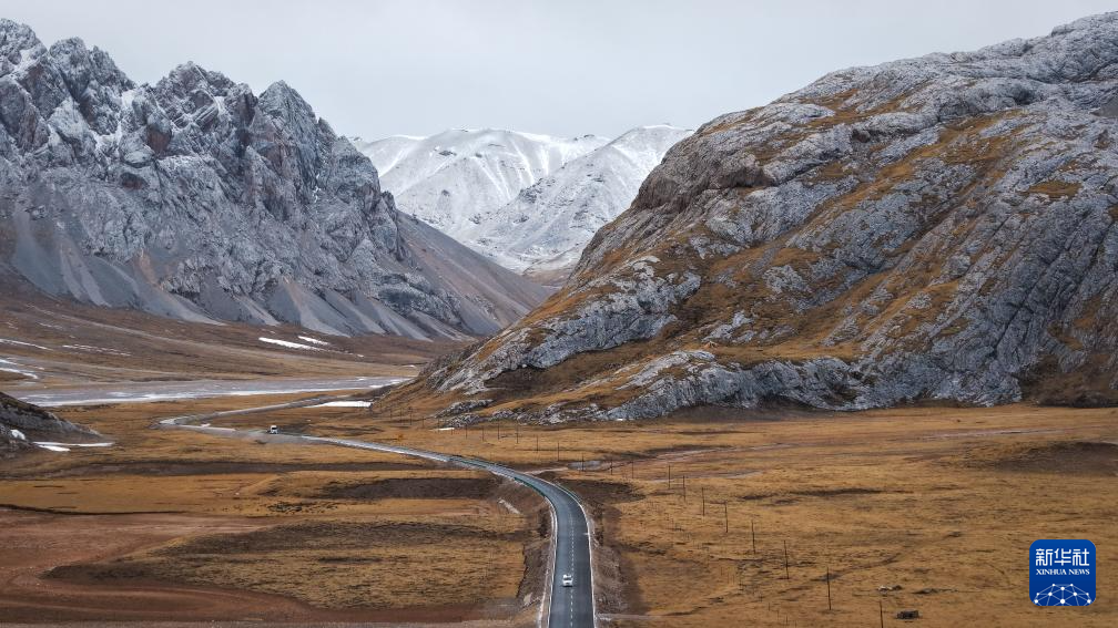 这是1月30日在青海省玉树藏族自治州杂多县境内拍摄的冬景风光(无人机照片)。新华社记者 齐芷玥 摄