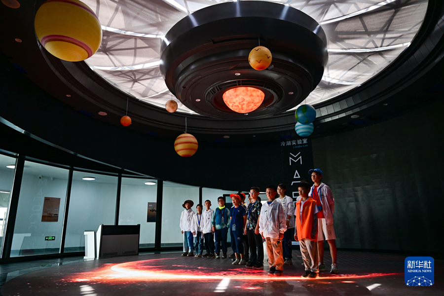 2025年7月29日,参加暑期研学的小朋友在冷湖镇“冷湖实验室”学习天文知识。 新华社记者 张龙 摄