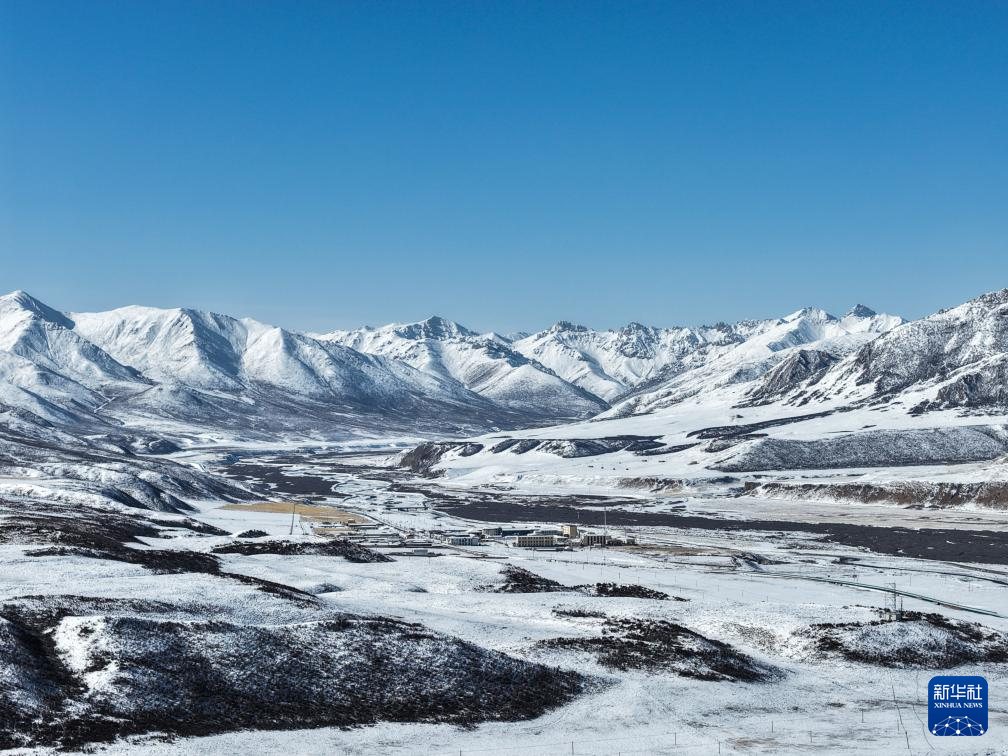 3月15日,青海省果洛藏族自治州玛沁县雪后迎来晴好天气,群山被白雪覆盖,与蓝天相映,构成一幅壮美的高原春日图景(无人机照片)。新华社记者 张龙 摄